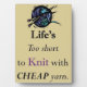 "Life's too short to knit with cheap yarn." Keepsake plaque for knitting enthousiates.