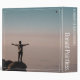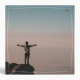 At the end of his life's work, man standing alone on the mountain, as the motifs of a mourning & condolence card and accessories in a modern black and white design.