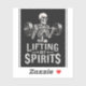 If you lift and enjoy dark, black humor, this "Lifting My Spirits" vinyl sticker is for you. The barbell curling gym junkie skeleton is dead-icated. This goth inspired graphic art is set on black for the perfect contrast. Lift your spirits and don't skip leg day, unless you want to end up like this guy.
