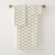 Inspired by Japanese wave patterns, seigaiha, and the elemental magic found in fantasy worlds, this design represents light, with white and pale yellow framing a rainbow in beams to imitate rays of light and the purification spells that the element usually embodies. These linens can be bought as a matching set or as individual pieces.