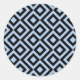 This bold light blue and black geometric pattern is an original ornamental design. Pale blue diamonds with black borders are surrounded by baby blue meanders which angle around them. Black zigzags separate the winding light blue paths and offset diamonds.