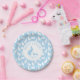 Light Blue And White Bunny Pattern Happy Easter Paper Plate