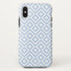 Protect your iPhone X with an impact resistant Case-Mate Tough case featuring an airy light blue and white geometric pattern. The ornamental design has white meanders which angle around pale blue diamonds containing white diamonds. Baby blue zigzags provide subtle separation between the winding paths.