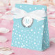 Cute robin egg blue and white polka dot pattern wedding favor box with initials and monogram, featuring a refreshing pattern of irregular white dots on robin egg blue background and a delicate laurel branch wreath frame. This trendy and cute, monogrammed favor box adds a touch of personalized elegance to your wedding reception. Fill it with treats, small gifts, or heartfelt notes to thank your guests for sharing your special day. The classic dots and personalized monogram create a memorable keepsake they'll cherish long after the celebration. Perfect for other special occasions too such as bridal showers, birthday parties, baby showers etc.