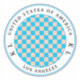 The chequerboard pattern is sky light blue and light beige. The round frame is white with a thin light blue circle and the text is written in black colours.