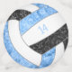 This cute volleyball birthday party confetti features the image of a stylized volleyball with light blue, black and white panels on the front and back of each confetti piece, upon which you can customize the text on the front and back - the blue and black panels of the volleyball are blended with a pretty floral kaleidoscopic pattern for a textured appearance that is artsy and girly - by katz_d_zynes