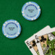 Poker chips that you can customize to put your business name, logo, city or town and state. You can use it during corporate events to advertise your business or to promote your brand name while entertaining your customers, clients or guests. Customizable poker chips that your can use to build brand name awareness while enjoying business parties. Design colours are dark blue texts on light blue background. Please check the appearance on front and back sides after uploading logo and typing texts. If the appearance is pleasing to you, you can place your order now. If you need to resize and move the logo and texts to fit on the poker chips, please change in the design tool. You can also change the font style, font colour and the inner background colour in the design tool.