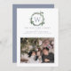 Light Blue Christmas Berries Wreath Holly Monogram Holiday Card