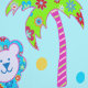 Light Blue Colourful Lions In The Jungle Pattern Wallpaper