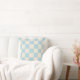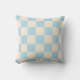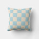 A light blue and cream checkerboard pillow with a clean geometric style. Perfect for modern decor.