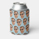 Funny custom face cut-out can cooler with a light blue background, personalized with a photo for any party. To make the face cut-out, click the button to edit the design and the remove background option, or download any mobile or computer app, create the cut-out, and upload a transparent png file.