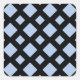 A stylish, geometric pattern of large and small light blue diamonds on a black background. The black forms a lattice which separates the baby blue diamond shapes.