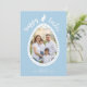 Light Blue Easter Egg Shape With Photo And Bunny Card