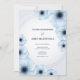 Wedding Invitation with a floral design. The flowers have light blue colours with black centres and the background is light blue. This invitation is part of a wedding collection that includes the wedding invitation, RSVP card, Save the Date, and more. Customize these items, add them to your cart, and have a wonderful wedding.