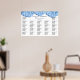 Blue Heaven floral border seating chart poster. Light blue hydrangea flowers hang from the top of 24 x 36 inch paper. Names and wedding date are at the top. Customize each block of text with names of guests and seat by table number or alphabetically.