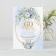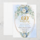 Light blue floral white peony gold 60th birthday invitation