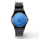 Light blue geometric mesh pattern Monogram Wrist Watch. Monogrammed Personalized gift watch accessory for him with your custom initial and name.