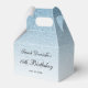 This beautiful favour box features faux glitter and your custom text. Use the template form the add your information. The "Customize Further" feature can be used to change the font and the text layout. You can also add text to the other side of the favour box.