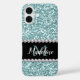 Light Blue Glitter & Gems with Name and Monogram Case-Mate iPhone Case
