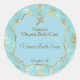 A product label featuring a light blue damask pattern in the background. Has space for your logo.