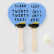 Creative graduation party and grad commencement cheer gear featuring funny Class of 2025 quote and black cap with gold tassel on light-blue background.