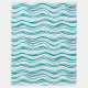 Light Blue / Green Wavy Lines on White Background Fleece Blanket
