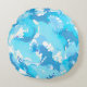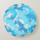 Light blue liquid abstract pattern and white round pillow
