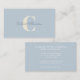 This elegant business card design features a soft pastel blue background with a large cream-coloured monogram at the centre, overlaid with a delicate handwritten name. Perfect for professionals, creatives, or small business owners seeking a minimal yet personalized style. A timeless and approachable choice for everyday networking.