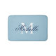 Light blue monogrammed bath mat | classy bathroom decor. Elegant navy blue and white monogram design. Stylish script typography with personalized name initial letter. Cute personalized wedding or Birthday gift idea for men and women. Pretty chic interior decoration.