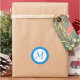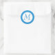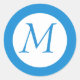 A simple, light blue, monogrammed sticker. You can use this sticker for envelope seals, gift tags, and birthday cards. This personalized sticker is perfect for all ages and occasions.