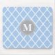 Light Blue Moroccan Lattice Grey Monogram Mouse Pad
