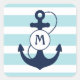 Light aqua nautical stripes with navy blue anchor and monogram.