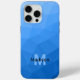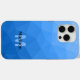 Light blue geometric mesh pattern Monogram iPhone 15 Case. Personalize with your custom initial and name. Triangle geometric mesh with light to dark blue ombre gradient.