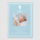 A light blue background, decorated with a white frame, and a white cross Personalize and add a photo name and details. White text.