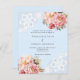 Light blue pink floral lace wedding invitation