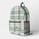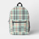 Light Blue Plaid Tartan Check Monogram Initials Printed Backpack