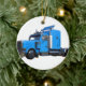 Light Blue Semi Truck in Three Quarter View Ceramic Ornament