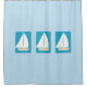 This light blue shower curtain with white sailboats goes with a coordinating bath mat.