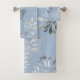 Light blue silver foliage botanical monogram bath towel set