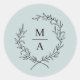 Light Blue Simple Elegant Laurel Wreath Monogram Classic Round Sticker