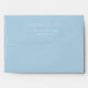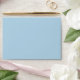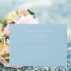 Light blue colour mailing envelope for your wedding invitations and features your name and address printed on back flap in a modern script style. Personalize your envelope by editing and replacing name and address with your own. Edit further to change font style or colour. Select your envelope size that fits your invitation.