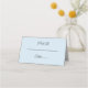 Simple style, light blue colour place cards for your wedding planning that feature the bride and groom's initials in black, stylized script along with space for guest name and table number. Customize your place card by editing and replacing bride and groom's initials. Select your place card paper style.