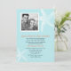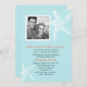 Starfish wedding announcement and reception only invitation. Add a picture of the newlyweds to this tropical themed invitation. Coral orange text for the names of the couple and type of party. All other text is black. Light blue cards have optional specialty paper upgrades and a choice of shapes.
