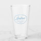 Beer glass for the wedding groomsman that features his name printed in a trendy, light blue, stylized script inside a light blue colour oval border along with wedding year date. A great party supply idea for a bachelor party! Personalize your beer glass by editing and replacing name and date with your own. Available in many, popular wedding colour schemes.