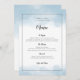 Pastel light blue watercolors form the backdrop for this summery design, running from the top and bottom edges and also partially filling the reverse, leading into white, with black text and a single line border. The text is easily personalised and the text colours can be changed if you so wish via the Click to Customize Further option.