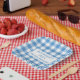 Get ready for a family reunion with paper plates featuring a light blue and white buffalo check plaid with up to 3 lines of text in a white rectangle in the centre. Perfect for an annual barbecue, picnic, or a new tradition. Personalize it with your name and text in the sidebar.