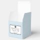 Perfectly classic light blue and white hangover relief kit favour box that is customizable for any event