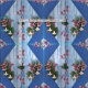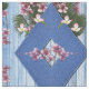 A light blue wood textured background with blue ribbing patterns and greenery & pink flowers