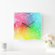 Light Bright Rainbow Abstract Swirly Patterned Square Wall Clock