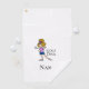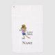 This is a fun golf towel to buy for yourself, or as a gift to the golfer that you know. The design features a sandy brown hair woman golfer with "Golf Diva" next to her. You are free to change or remove that. Below, you can personalize this with a name (first or last) also. Designed by Sheila Cicchi, Brownielocks.com. All Rights Reserved.